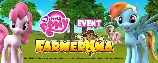 Hasbro und Farmerama bringen gemeinsam die MY LITTLE PONY-Charaktere vom 29. April bis zum 7. Mai auf deine Farm, um dort einige schöne Stunden zu verbringen und Dir bei den täglichen Arbeiten auf der Farm zur Hand zu gehen.